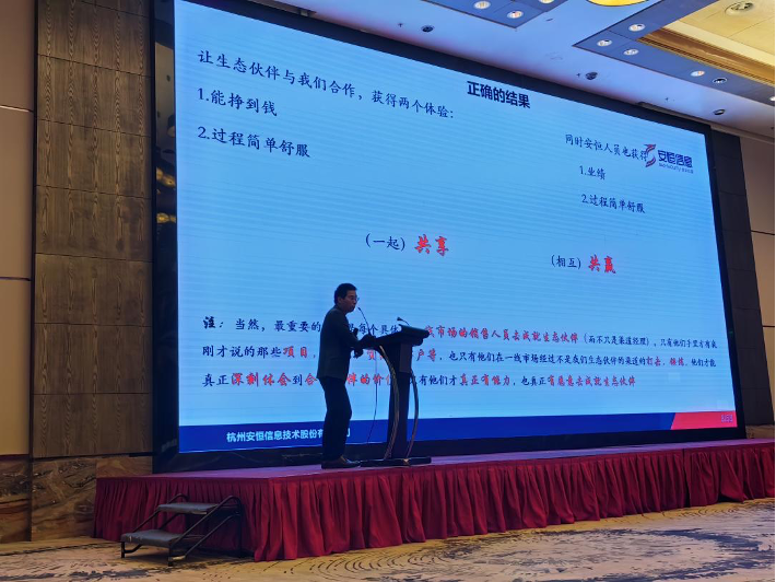 那么,如何成就生態(tài)伙伴實現(xiàn)共享與共贏,安恒人的生態(tài)建設(shè)工作要怎么做?楊開亮表示很簡單,安恒信息先成就生態(tài)伙伴,然后再一起談合作。生態(tài)伙伴與安恒信息合作可以獲得兩大體驗,即能掙到錢,過程簡單舒服。同時安恒人員也獲得業(yè)績,過程也更簡單,這就是(一起)共享,(相互)共贏。對安恒信息來說,與合作伙伴一起共享平臺能力,再通過生態(tài)伙伴去贏得每一個終端客戶,在合作中彼此成就,才是最好的雙贏!