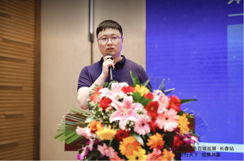 隨后,安恒信息長春辦事處主任陳暉帶來了安恒信息吉林區(qū)域三年發(fā)展的介紹,特別強(qiáng)調(diào)了扎根本地要做好的三個模塊——安全運(yùn)營中心、網(wǎng)絡(luò)安全人才培養(yǎng)基地、車聯(lián)網(wǎng)安全全國總基地,安恒信息始終專注服務(wù)價(jià)值,成就最終客戶。陳暉還分享了安恒信息長春城市智能體安全運(yùn)營項(xiàng)目,該項(xiàng)目榮獲2022年安全守衛(wèi)者計(jì)劃 “安全運(yùn)營專題”優(yōu)秀案例,協(xié)助長春市信息中心完成安全實(shí)戰(zhàn)化應(yīng)急演練,規(guī)劃建設(shè)吉林省網(wǎng)絡(luò)空間安全運(yùn)營基地,無不成為護(hù)航數(shù)字化安全的最佳實(shí)踐。
