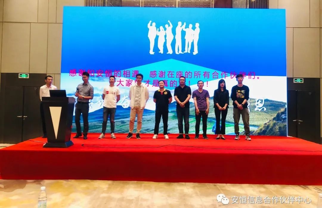 在謝耀輝總經(jīng)理"感謝和安恒的相遇,感謝在座的所有合作伙伴們。大家好才是真的好?。?!"的口號與期望中,南京嘉志德電子科技有限公司全體安全事業(yè)部全體員工上臺與大家致謝。