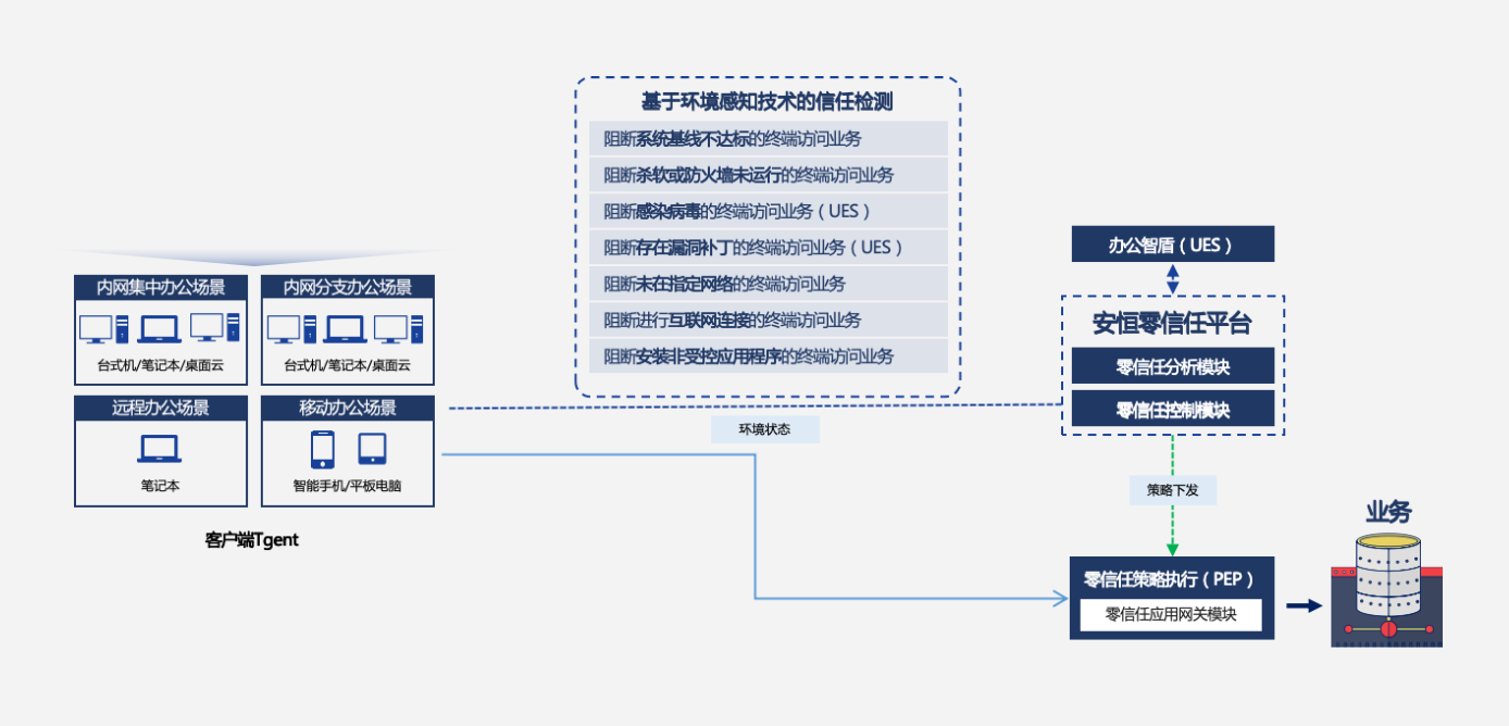 - 持續(xù)監(jiān)測、感知終端環(huán)境及用戶行為,只針對合法用戶、合法終端開放安全通道。