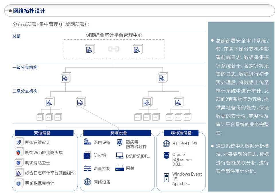 ? ? ? ?中國聯(lián)通信息化部在信息化內(nèi)網(wǎng)安全管理方面,經(jīng)過幾年的安全防護體系以及系統(tǒng)建設(shè),已經(jīng)具備了基本的安全管理功能,管控范圍覆蓋MSS、BSS、ECS/ESS系統(tǒng)的IT基礎(chǔ)設(shè)施、安全基礎(chǔ)設(shè)施和關(guān)鍵業(yè)務(wù)應(yīng)用。隨著電子商務(wù)業(yè)務(wù)的快速發(fā)展,中國聯(lián)通核心業(yè)務(wù)支撐系統(tǒng)的社會與經(jīng)濟效應(yīng)日益顯著,外部安全威脅日益嚴重,內(nèi)控壓力逐漸增大,因此迫切需要進一步完善信息安全防護體系,在現(xiàn)有安全防護體系的基礎(chǔ)上,建立針對突發(fā)事件的智能預(yù)警機制,提升安全事件實時分析能力,增強敏感操作的安全管控。并且目前隨著上級部門和集團對信息安全的重視程度越來越高,信息安全的建設(shè)也相應(yīng)的加大了投入,各安全設(shè)備、業(yè)務(wù)系統(tǒng)也逐漸建立,相關(guān)的信息保護(安全審計)的建設(shè)必要性也隨之出現(xiàn),基于上述背景及必要性,啟動本建設(shè)項目。