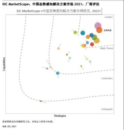 在IDC發(fā)布的《IDC MarketScape: 中國態(tài)勢感知解決方案市場2021,廠商評估》報告中,安恒信息憑借AiLPHA大數(shù)據(jù)態(tài)勢感知繼續(xù)成為中國態(tài)勢感知解決方案領(lǐng)導(dǎo)者企業(yè)之一。