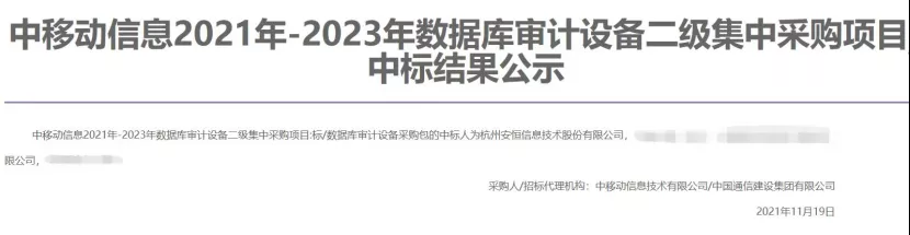 以綜合分第一的成績中標(biāo)中國移動數(shù)據(jù)庫審計設(shè)備集采項目,完美達(dá)成審計99.9999%準(zhǔn)確率測試。