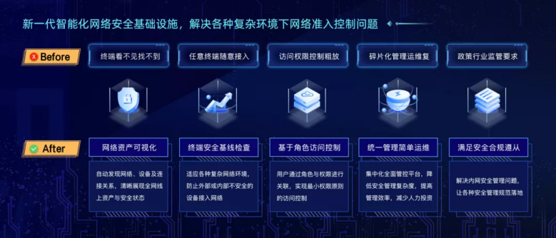 2021年4月安恒EDR發(fā)布終端準(zhǔn)入系統(tǒng),終端準(zhǔn)入系統(tǒng)以資產(chǎn)為視角,提供安全可視,實(shí)現(xiàn)資產(chǎn)風(fēng)險(xiǎn)識(shí)別,令安全防護(hù)無死角,做到“設(shè)備可知、入網(wǎng)可信、邊界可控,行為可查,安全可控”。
