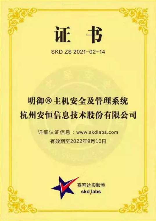 2021年9月30日安恒EDR在測(cè)試中憑借在病毒防護(hù)及勒索病毒防護(hù)等多方面優(yōu)異的表現(xiàn),順利通過國際知名第三方網(wǎng)絡(luò)信息安全測(cè)評(píng)認(rèn)證機(jī)構(gòu)賽可達(dá)實(shí)驗(yàn)室認(rèn)證,被授予 “東方之星”證書(SKD ZS2021-02-14),本次獲獎(jiǎng)證明了安恒EDR已經(jīng)具備國際水平。