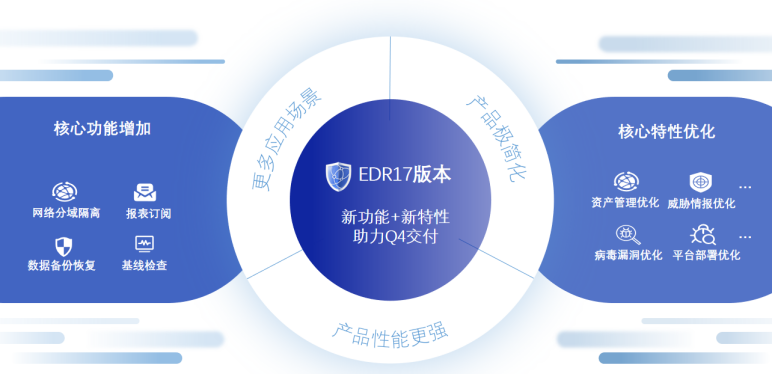 EDR V2.0.17版本于2021年12月24日重磅發(fā)布,此版本不僅推出了網(wǎng)絡(luò)分域、基線檢查等全新功能、并且針對(duì)原有的核心功能進(jìn)行深層次優(yōu)化—令“強(qiáng)點(diǎn)更強(qiáng)”。