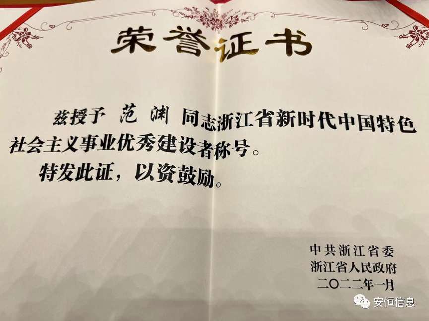 安恒信息董事長(zhǎng)范淵榮獲浙江省新時(shí)代中國(guó)特色社會(huì)主義事業(yè)優(yōu)秀建設(shè)者