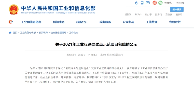 安恒信息成功入選工信部2021年工業(yè)互聯(lián)網(wǎng)試點示范項目名單