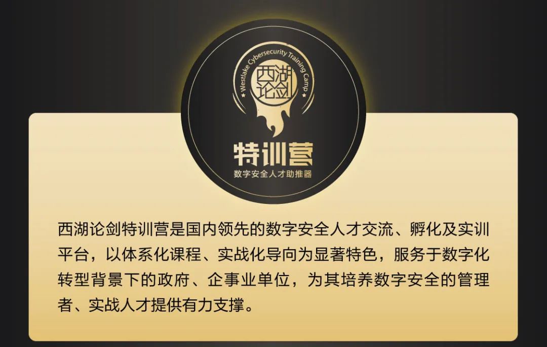 在2023年西湖論劍·網(wǎng)絡安全大會即將召開之際,西湖論劍安全特訓營作為大會特色項目之一,率先啟動招募!西湖論劍安全特訓營是國內(nèi)領(lǐng)先的數(shù)字安全人才交流、孵化及實訓平臺,以體系化課程、實戰(zhàn)化導向為顯著特色,服務于數(shù)字化轉(zhuǎn)型背景下的政府、企事業(yè)單位,為其培養(yǎng)數(shù)字安全的管理者、實戰(zhàn)人才提供有力支撐。