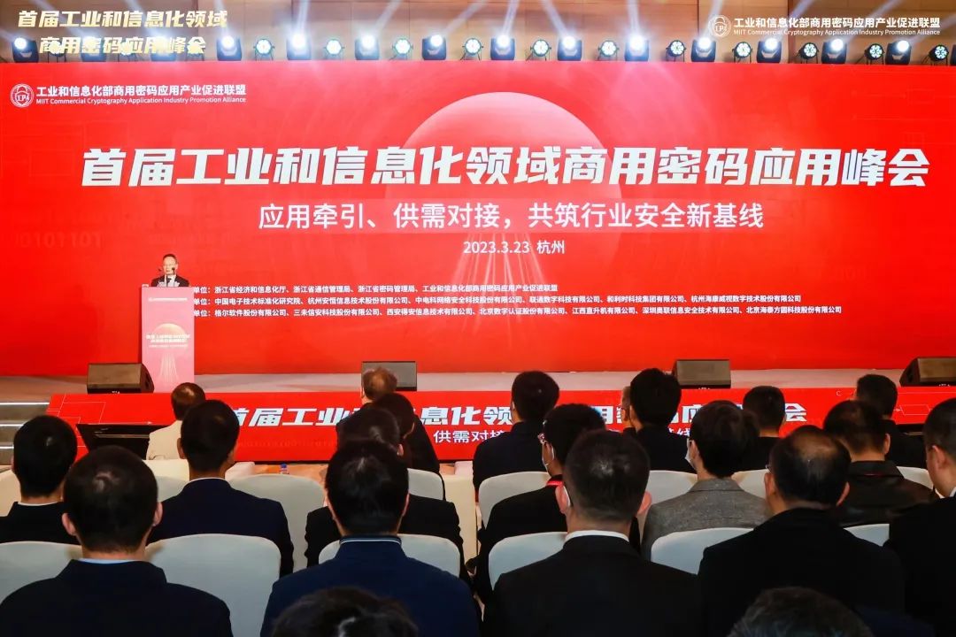3月22日-3月23日,首屆工業(yè)和信息化領(lǐng)域商用密碼應(yīng)用峰會(huì)在杭州舉行。峰會(huì)以“應(yīng)用牽引、供需對(duì)接,共筑行業(yè)安全新基線”為主題,匯聚知名院士、行業(yè)專家、商用密碼應(yīng)用供需方重點(diǎn)企業(yè)代表,通過應(yīng)用成果展、峰會(huì)主論壇和供需對(duì)接分論壇等系列活動(dòng),共同探討新形勢下工業(yè)和信息化領(lǐng)域商用密碼應(yīng)用推廣路徑,打造商用密碼應(yīng)用行業(yè)標(biāo)桿。