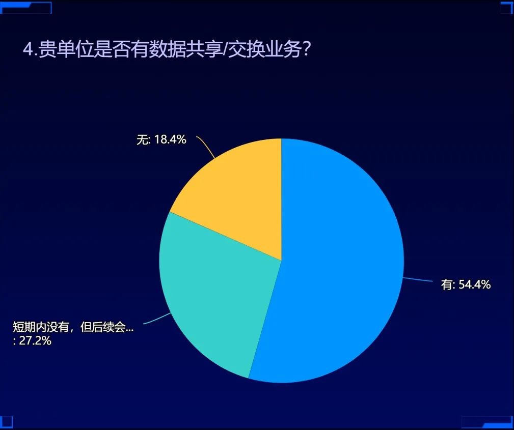 3、過(guò)半客戶單位存在數(shù)據(jù)交換和共享需求,基于這種需求場(chǎng)景進(jìn)行更好地產(chǎn)品技術(shù)和解決方案的適配就顯得十分必要和緊迫;