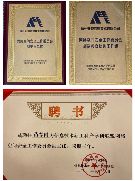 安恒信息被授予網(wǎng)安工委會(huì)副主任單位 苗春雨獲聘副主任委員