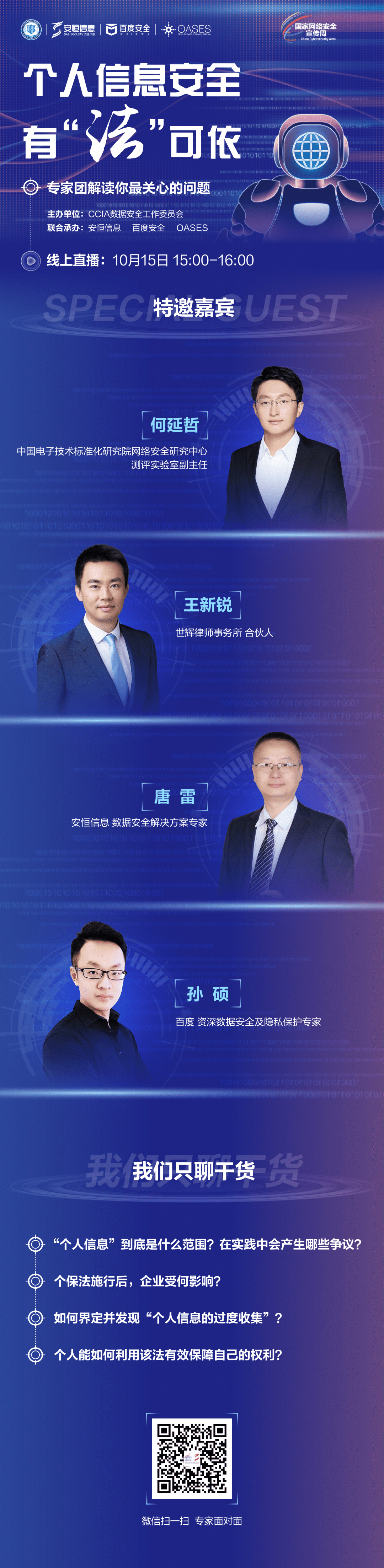 網(wǎng)安周活動(dòng) | “個(gè)人信息安全有法可依”主題直播活動(dòng)預(yù)告
