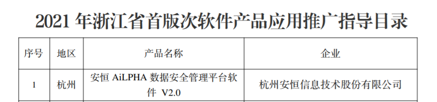 2021年浙江省首版次軟件產(chǎn)品應(yīng)用指導(dǎo)目錄公示 安恒信息這款產(chǎn)品入選