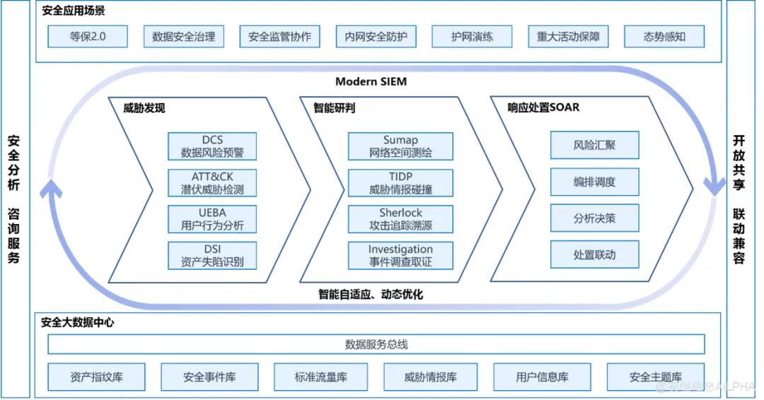 智能安全運營是以安全大數(shù)據(jù)為基礎(chǔ),從全局視角提升對安全威脅的發(fā)現(xiàn)識別、理解分析、響應(yīng)處置能力的一種方式,最終是為了決策與行動,是安全能力的落地。