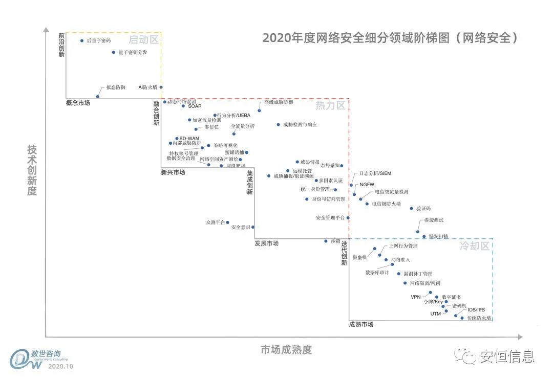 國內(nèi)數(shù)字化領域第三方調(diào)研機構數(shù)世咨詢于近日正式推出網(wǎng)絡安全成熟度階梯(網(wǎng)絡安全),并從技術創(chuàng)新度與市場成熟度兩大軸向進行排列。