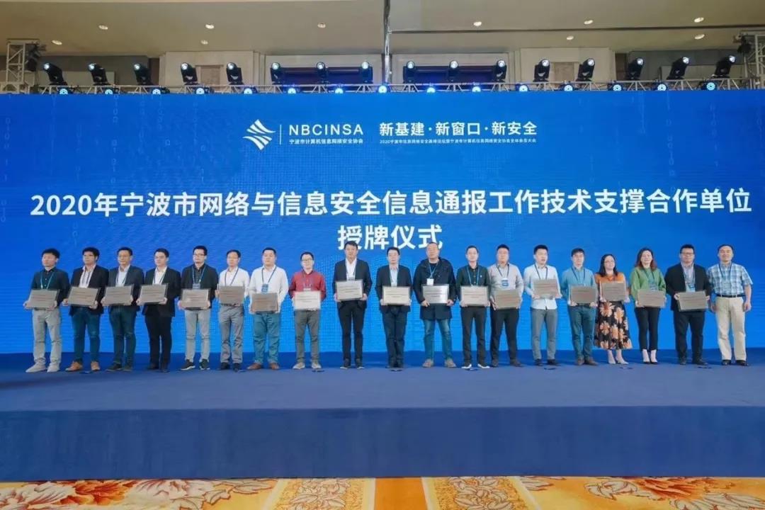會上,授予安恒信息“2020寧波市網(wǎng)絡與信息安全信息通報工作支撐單位”稱號,公司代表上臺接受授牌。