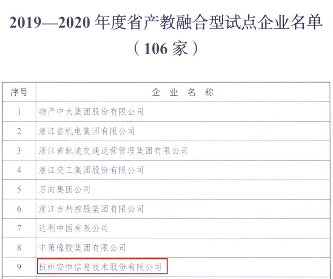 安恒信息入選浙江省產(chǎn)教融合“五個一批”建設(shè)名單