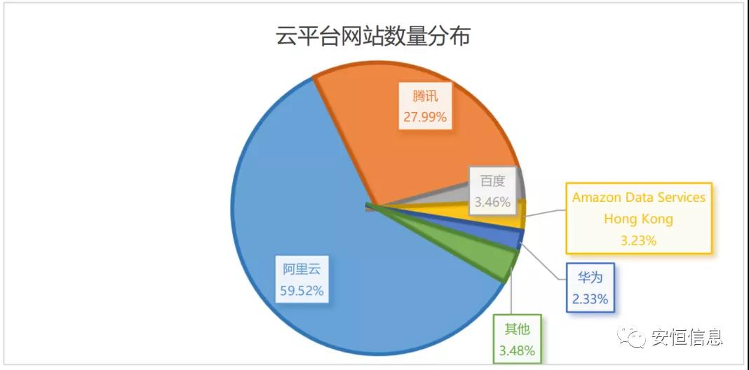 2020年,累計(jì)監(jiān)測(cè)發(fā)現(xiàn)云平臺(tái)上中大型單位的網(wǎng)站與Web業(yè)務(wù)系統(tǒng)數(shù)量有6507161個(gè),覆蓋單位604614個(gè),主要是阿里云網(wǎng)站和騰訊云網(wǎng)站,分別占比59.52%和27.99%。