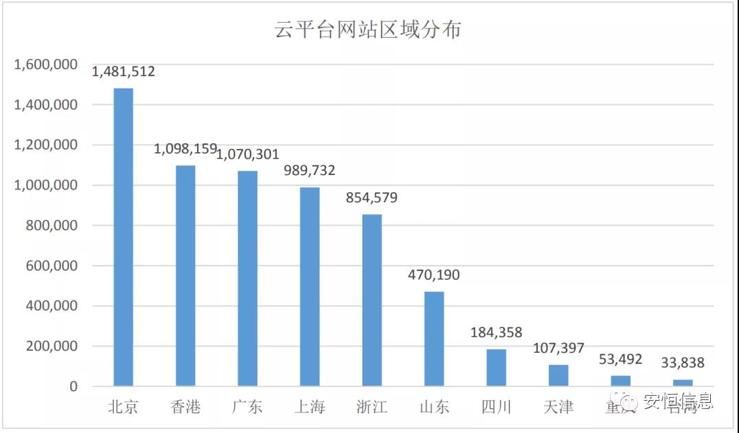 根據(jù)對(duì)云平臺(tái)網(wǎng)站區(qū)域進(jìn)行分析,發(fā)現(xiàn)主要分布在北京、香港、廣東等區(qū)域。