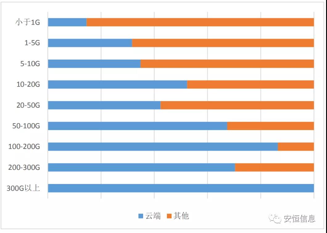 云計(jì)算技術(shù)的諸多優(yōu)點(diǎn)使得云服務(wù)得以廣泛應(yīng)用,越多來(lái)越多的用戶將業(yè)務(wù)遷移至云端,云端的流量也越來(lái)越大,但這也被大流量DDoS攻擊所利用。從各流量區(qū)間分布來(lái)看,在大流量攻擊中,攻擊主力來(lái)自云端。