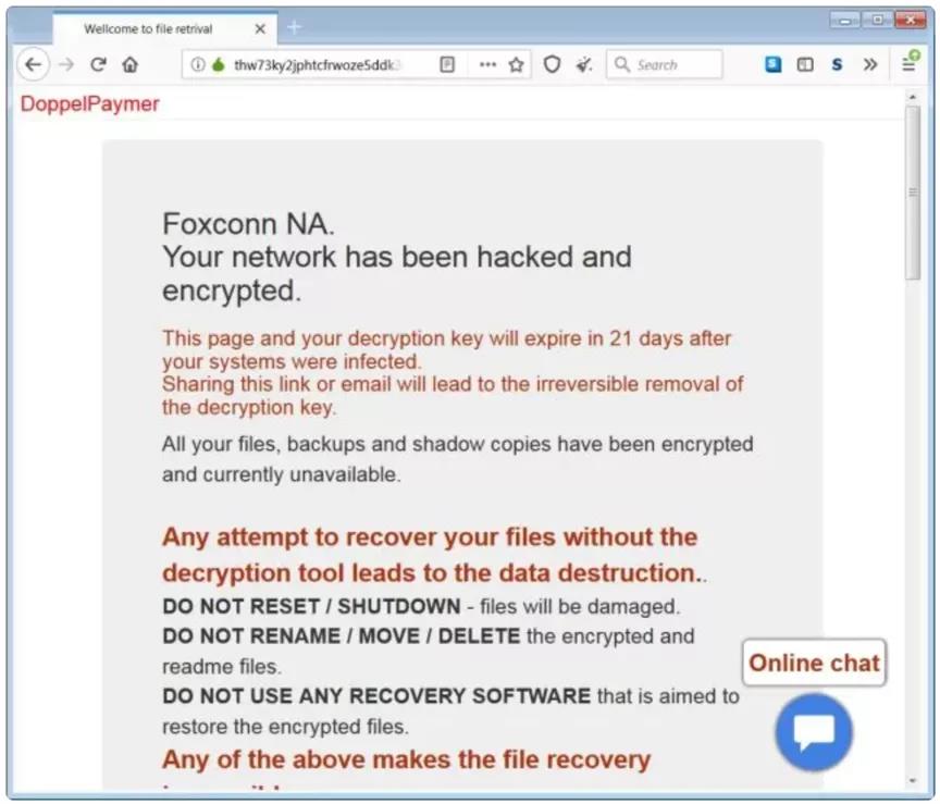 全球最大的電子產(chǎn)品制造商富士康,近日遭受勒索軟件攻擊。攻擊者在攻擊之前竊取了100G未加密文件,并刪除了20~30TB的備份文件,攻擊范圍涉及1200臺(tái)服務(wù)器。瘋狂的攻擊者要求支付3400萬(wàn)美金(約2.3億人民幣)。此次攻擊事件使得富士康工廠業(yè)務(wù)遭受了不同程度的影響,加密文件涉及到的相關(guān)業(yè)務(wù)甚至直接停擺了。