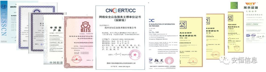 作為國家級核心網(wǎng)絡(luò)安全技術(shù)支撐單位,安恒信息先后獲得了安全工程、風(fēng)險評估、應(yīng)急響應(yīng)等國家最高級的安全服務(wù)資質(zhì),具備很強的安全服務(wù)支撐能力。