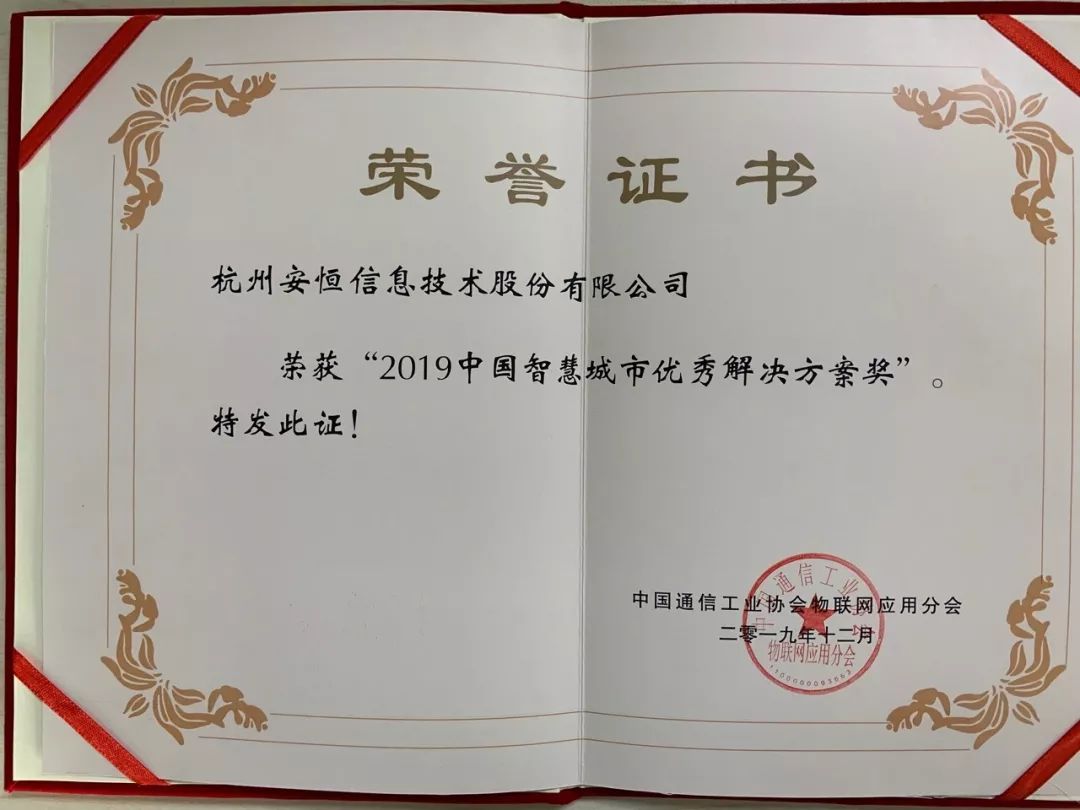 近日,中國通信工業(yè)協(xié)會物聯(lián)網(wǎng)應用分會、中國智慧城市科學發(fā)展大會分別為安恒信息頒發(fā)“中國智慧城市優(yōu)秀解決方案獎”與“2019中國智慧城市十大精品案例”。