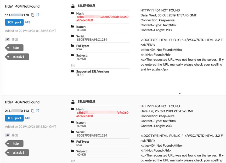 使用安恒全球網(wǎng)絡(luò)空間超級(jí)雷達(dá)sumap進(jìn)行檢索,又發(fā)現(xiàn)另2個(gè)使用了相關(guān)證書(shū)的ip地址: