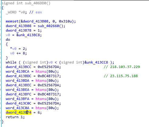 樣本內(nèi)置的兩個(gè)IP地址分別為218.103.37.229和23.115.75.188。