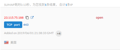 2019年9月美國宣布加強(qiáng)對(duì)朝鮮的制裁,本次分析的Lazarus樣本活躍時(shí)期初步推測(cè)在該輪制裁之前。通過網(wǎng)絡(luò)空間測(cè)繪探測(cè)技術(shù),我們了解到IP:23.115.75.188在2019年6月1日開放過443端口: