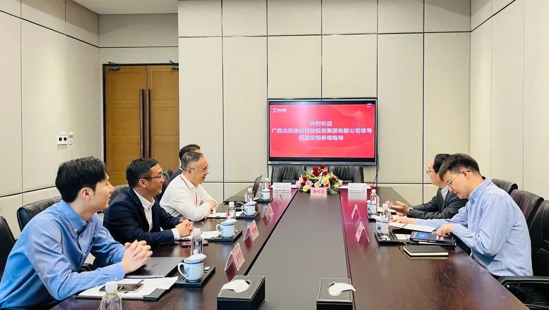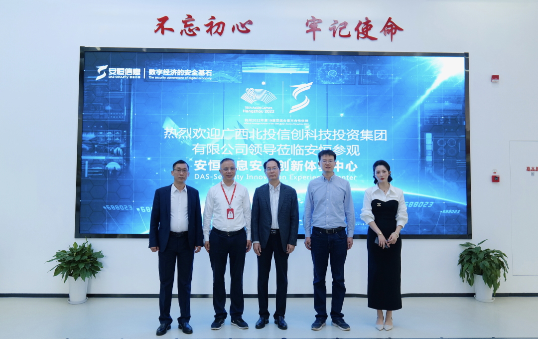 會(huì)前,北投信創(chuàng)集團(tuán)領(lǐng)導(dǎo)一行參觀了安全創(chuàng)新體驗(yàn)中心,了解安恒信息在商用密碼安全、信創(chuàng)領(lǐng)域取得的成果。