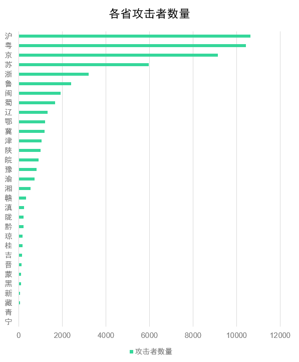 圖6 各省攻擊者郵箱賬號數(shù)量