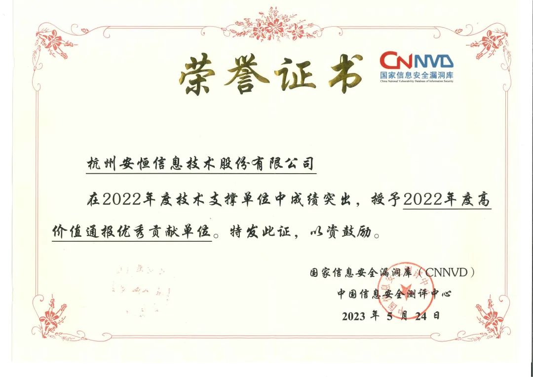 大滿貫!安恒信息獲CNNVD2022年度五項殊榮