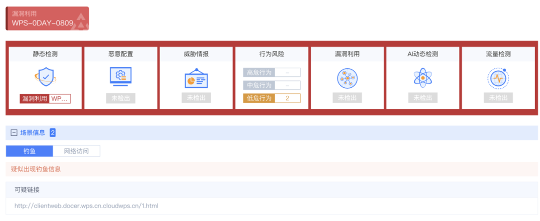 立秋次日(8月9日),就已經(jīng)出現(xiàn)某知名辦公軟件0day,在未升級(jí)云沙箱策略時(shí),安恒云沙箱就已經(jīng)能夠?qū)ζ鋚ayload進(jìn)行檢出。云沙箱后續(xù)也針對(duì)該0day特定告警名稱進(jìn)行了及時(shí)更新。