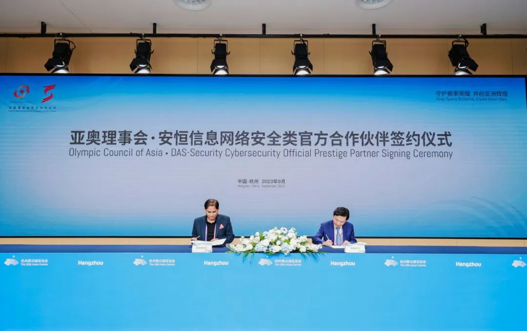 9月19日,亞奧理事會(huì)正式與安恒信息在杭州亞運(yùn)會(huì)主媒體中心(MMC)完成簽約,安恒信息正式成為亞奧理事會(huì)網(wǎng)絡(luò)安全類(lèi)官方合作伙伴。