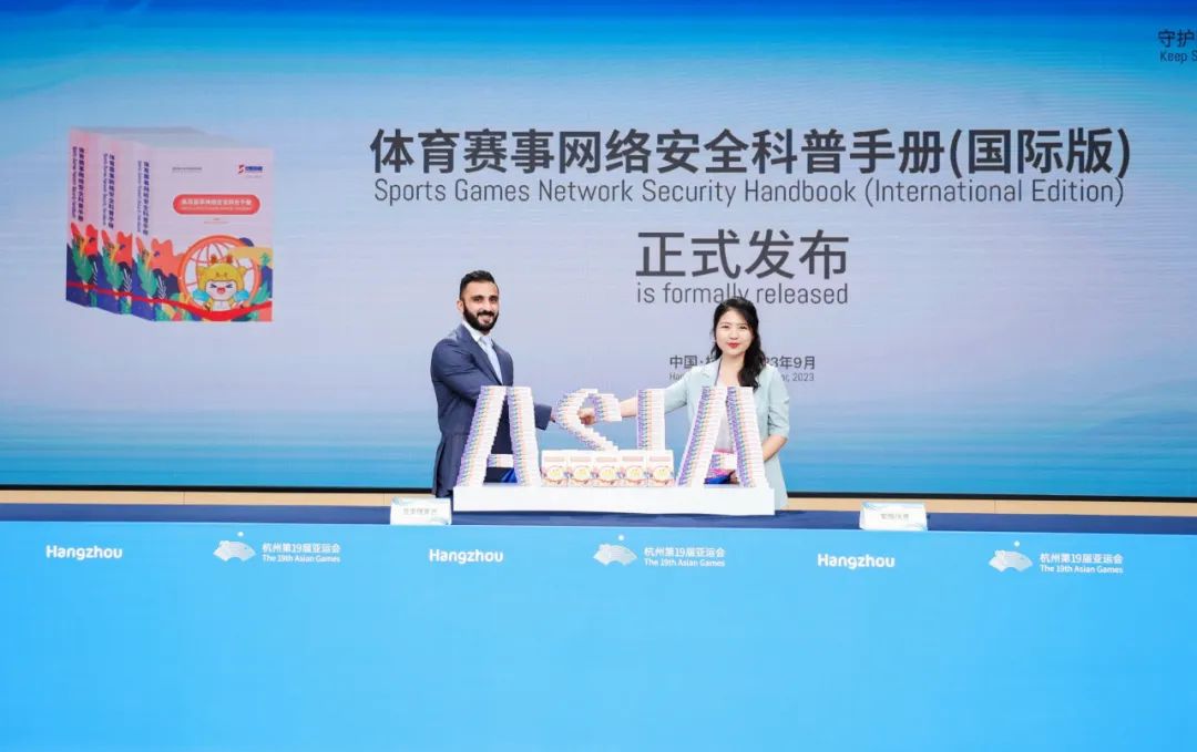 簽約儀式上,范淵和安恒信息高級(jí)副總裁、首席安全官袁明坤獲頒亞奧理事會(huì)網(wǎng)絡(luò)安全專(zhuān)家聘書(shū),雙方共同啟動(dòng)了“亞洲體育賽事網(wǎng)絡(luò)安全保障計(jì)劃”,并共同發(fā)布了《體育賽事網(wǎng)絡(luò)安全科普手冊(cè)(國(guó)際版)》。