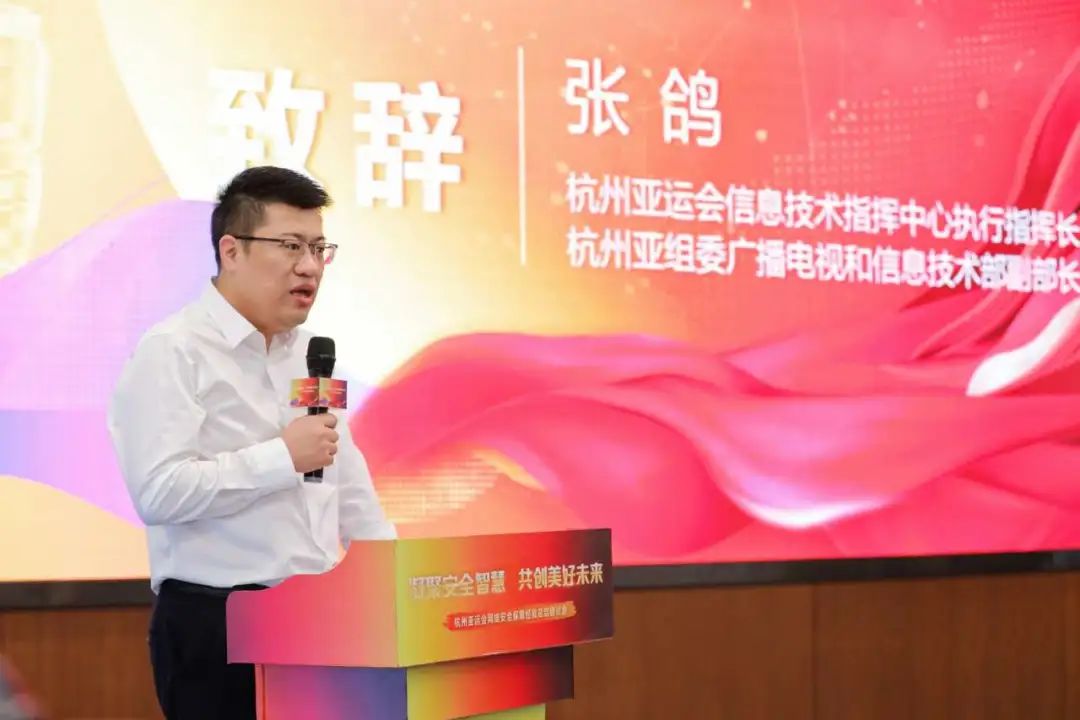 張鴿在致辭中指出,智能之花在亞運(yùn)舞臺上精彩綻放的背后,是網(wǎng)絡(luò)安全重保團(tuán)隊(duì)日復(fù)一日、兢兢業(yè)業(yè)的默默守護(hù)。我們的網(wǎng)絡(luò)安全團(tuán)隊(duì)以卓越的專業(yè)技術(shù)、吃苦耐勞的工作態(tài)度和嚴(yán)謹(jǐn)?shù)墓ぷ髯黠L(fēng),為杭州亞運(yùn)會、亞殘運(yùn)會筑起了一道不可逾越的網(wǎng)絡(luò)安全屏障,交出了一份零事故的滿意的答卷。
