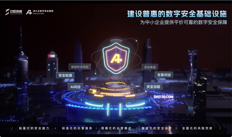 安恒信息云產(chǎn)品線常務(wù)副總裁葉章龍介紹到,“A大夫數(shù)字安全醫(yī)院”是安恒信息針對(duì)中小企業(yè)研發(fā)和建設(shè)的普惠數(shù)字安全基礎(chǔ)設(shè)施。“A大夫”依托安恒AI大模型和SaaS化的安全能力,同時(shí)配合數(shù)字安全保險(xiǎn),降低企業(yè)數(shù)字安全建設(shè)成本,兜底企業(yè)數(shù)字安全風(fēng)險(xiǎn),以“醫(yī)療+醫(yī)保”的方式向客戶提供全生命周期的數(shù)字安全保障。