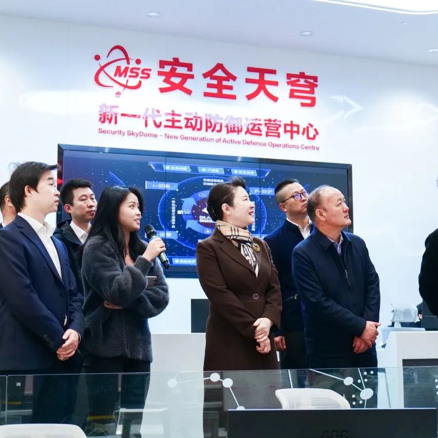其間,梁昆一行觀摩了安恒信息安全創(chuàng)新體驗中心及警企聯(lián)合實驗室。深度了解了安恒信息的發(fā)展歷程、未來戰(zhàn)略和取得的前沿科技成果,著重考察了安恒信息在數(shù)據(jù)安全及公安網(wǎng)安相關(guān)方面的合作成果,觀摩了 MSS亞運天穹——新一代主動防御安全運營中心及其為杭州亞運會提供全天候、全場景、全過程、全閉環(huán)的安全運營保障服務(wù)的情況。