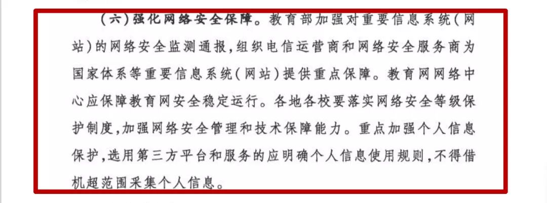 如何保障線上教學(xué)的安全性?日前,教育部發(fā)布《教育部應(yīng)對新型冠狀病毒感染肺炎疫情工作領(lǐng)導(dǎo)小組辦公室關(guān)于疫情防控期間以信息化支持教育教學(xué)工作的通知》,就做好教育信息化工作、支持學(xué)校延期開學(xué)期間線上教學(xué)工作開展作出部署。在《通知》中,也明確提出要強(qiáng)化網(wǎng)絡(luò)安全保障。