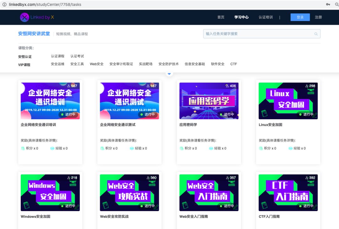 安恒自主研發(fā)與運(yùn)營(yíng)的互聯(lián)網(wǎng)網(wǎng)絡(luò)安全教育平臺(tái)——LinkedbyX(X平臺(tái))支撐在線視頻課程學(xué)習(xí)、理論考試和直播分享。