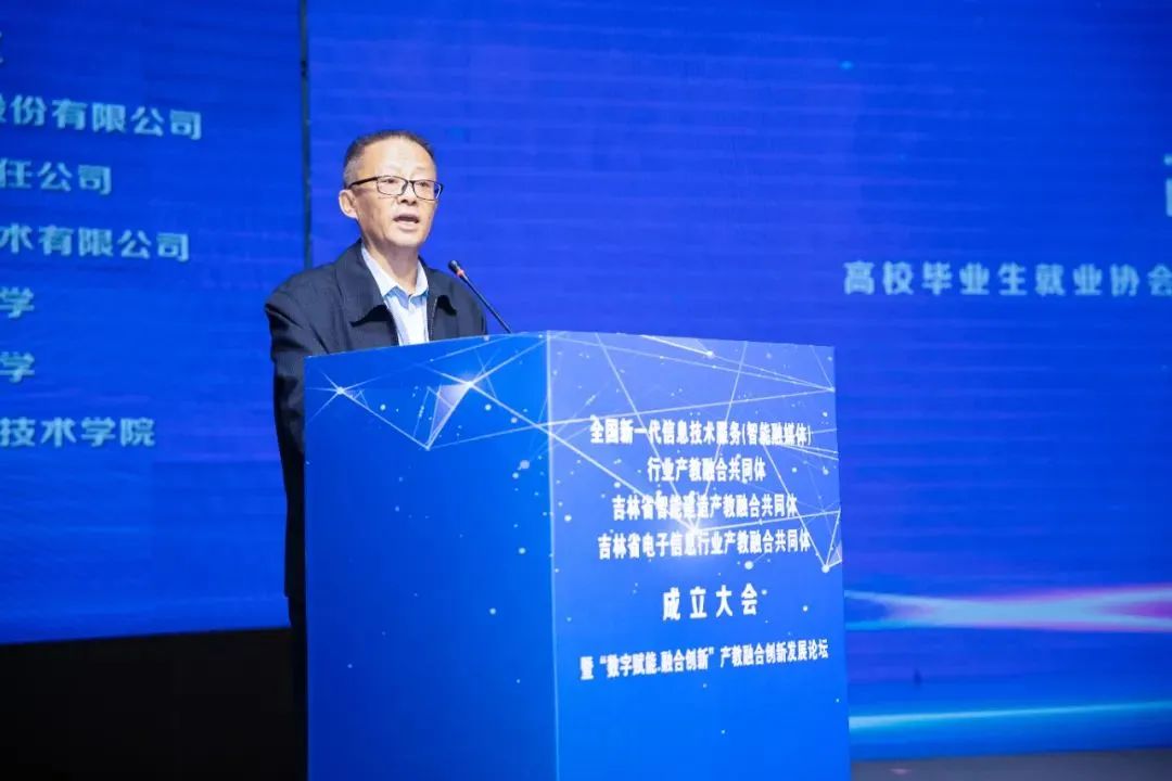 工業(yè)和信息化部教育與考試中心、高校畢業(yè)生就業(yè)協(xié)會數字產業(yè)與就業(yè)工作指導委員會、吉林省教育廳、吉林省省工業(yè)和信息化廳、吉林省省住房和城鄉(xiāng)建設廳和吉林市政府相關領導,以及來自150余家相關企業(yè)、本科院校、高職院校、行業(yè)組織等單位的代表及嘉賓見證共同體成立。