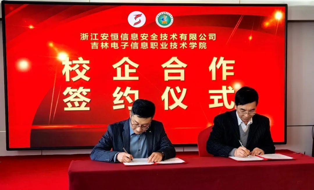 在分論壇中,樊睿代表安恒信息完成與吉林電子信息職業(yè)技術學院校企合作簽約,雙方將在未來展開深度合作,攜手共育網絡安全復合型人才。