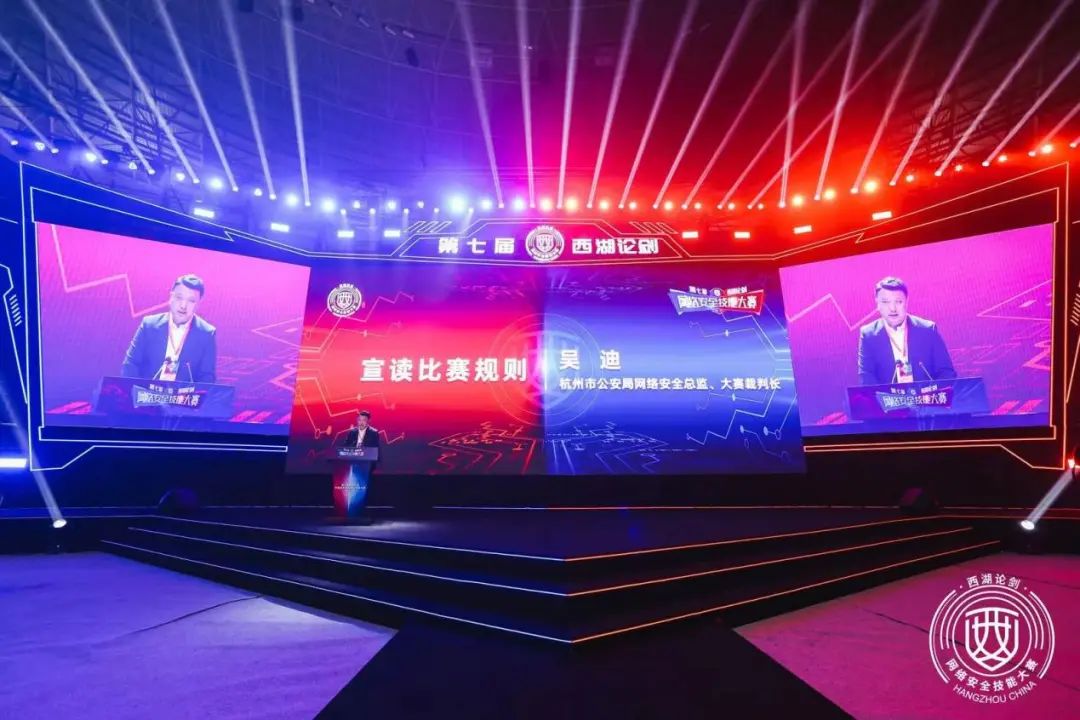 杭州市公安局網(wǎng)絡(luò)安全總監(jiān)、大賽裁判長(zhǎng)吳迪宣讀比賽規(guī)則