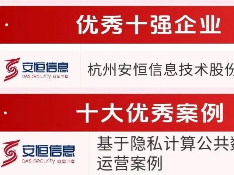 安恒信息獲評“2023年網(wǎng)絡安全優(yōu)秀十強企業(yè)”和“2023年網(wǎng)絡安全十大優(yōu)秀案例”