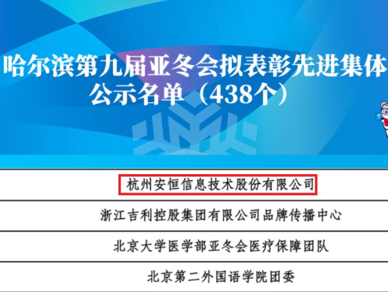 安恒信息獲哈爾濱亞冬會先進集體表彰