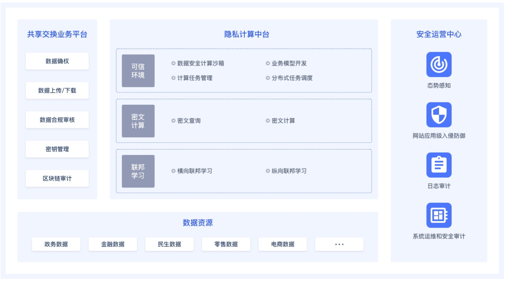 AiLAND數(shù)據(jù)安全島平臺(tái)是一個(gè)專注于保障數(shù)據(jù)安全流通,致力于解決數(shù)據(jù)共享的信任和隱私保護(hù)問(wèn)題的數(shù)據(jù)開(kāi)放和共享交換平臺(tái)。綜合應(yīng)用安全計(jì)算沙箱,聯(lián)邦學(xué)習(xí),區(qū)塊鏈,密文計(jì)算等多種前沿技術(shù),配合關(guān)鍵行為數(shù)字驗(yàn)簽和全業(yè)務(wù)流程追蹤審計(jì)技術(shù),實(shí)現(xiàn)共享數(shù)據(jù)的所有權(quán)和使用權(quán)分離,確保數(shù)據(jù) “可用不可見(jiàn)”,保障數(shù)據(jù)共享交換過(guò)程的可靠、可控和可溯。
